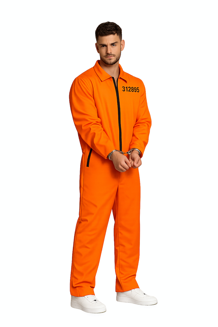 Fængselsdragt Kostume Orange Deluxe Inkl. Håndjern